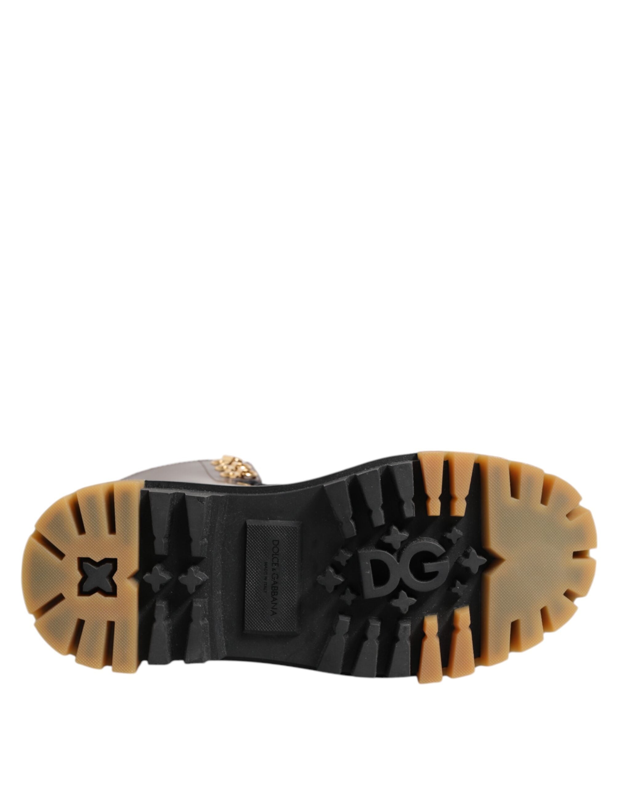 Dolce & Gabbana Brown Black Leather Boots Zipper Lace Up Shoes