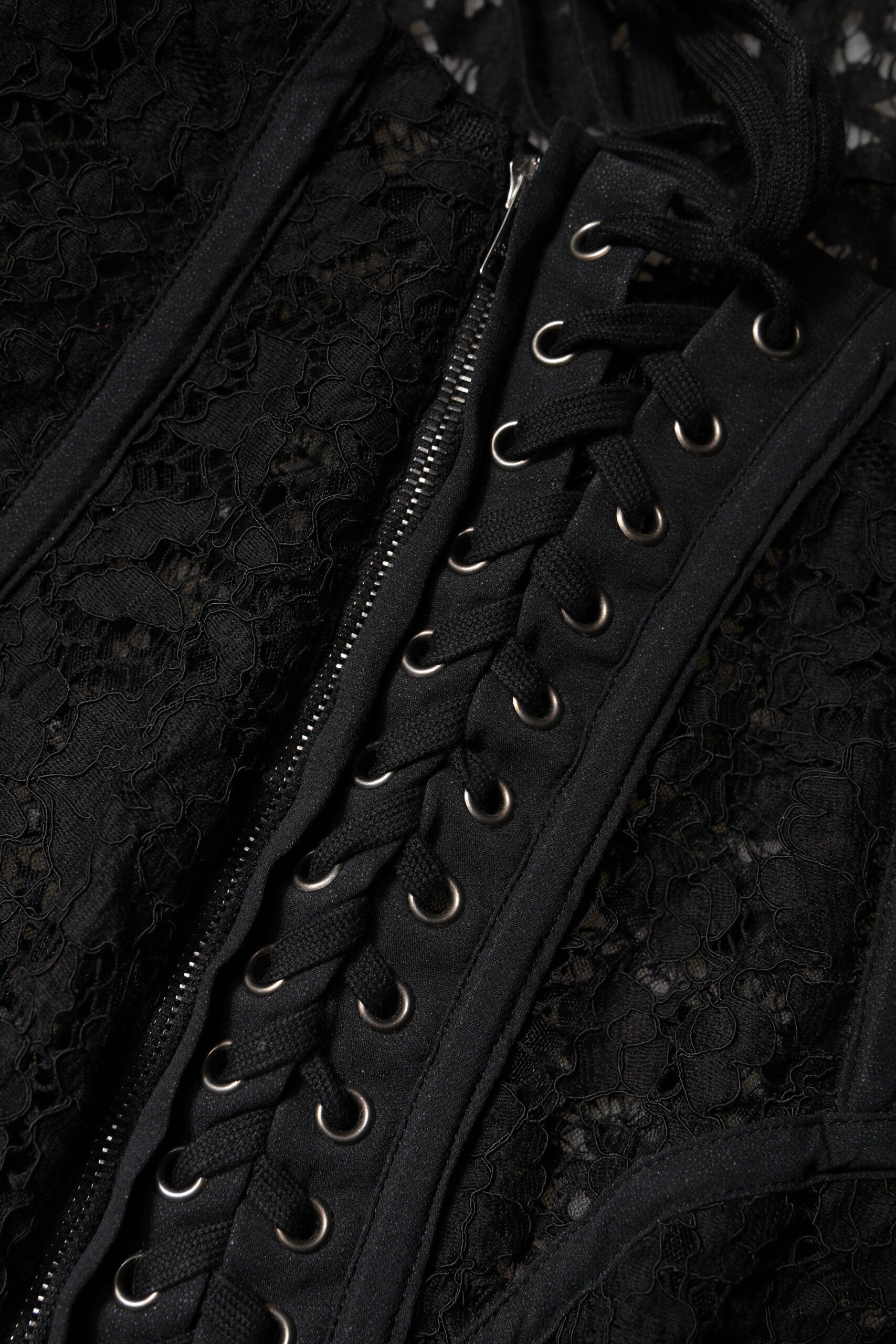 Dolce & Gabbana Black Cotton Floral Lace Corset Bustier Top